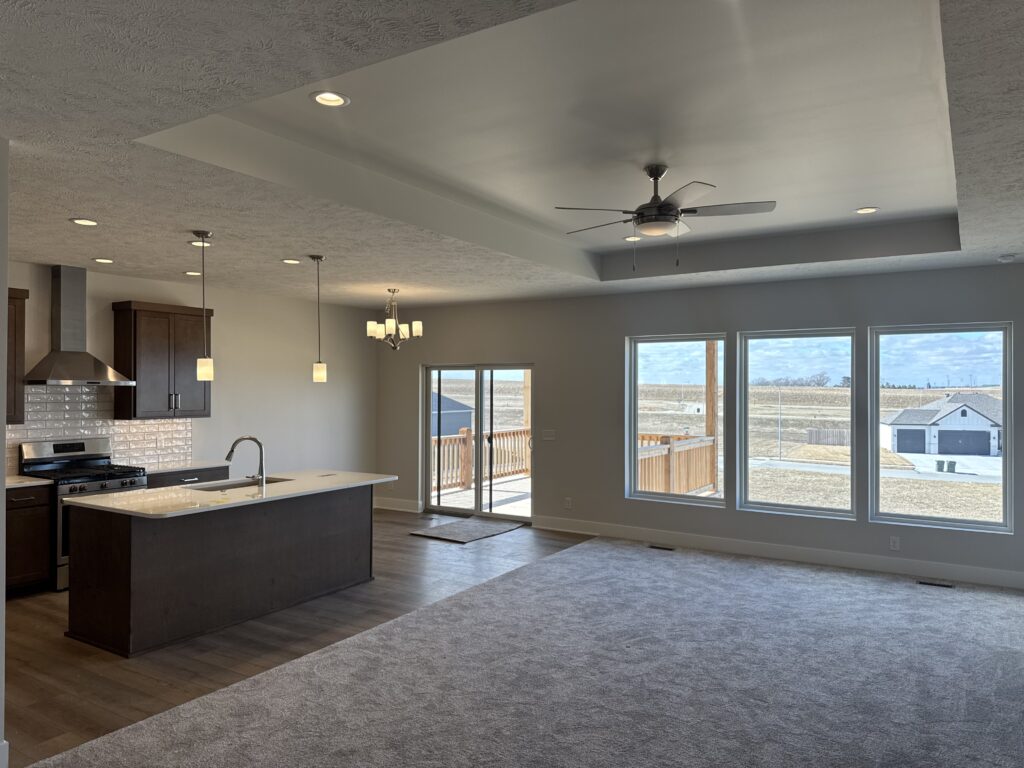 Introducing our Parker Ranch plan. This plan has 1,559 sq ft on the main floor with 3 bedrooms, and 1 3/4 baths and a kitchen that opens to a spacious great room. This home has a 3-car garage, 50″ electric fireplace in the great room, trayed ceilings in the great room and primary bedroom, as well as LVP flooring in entries, kitchen, bathrooms, and laundry room.
